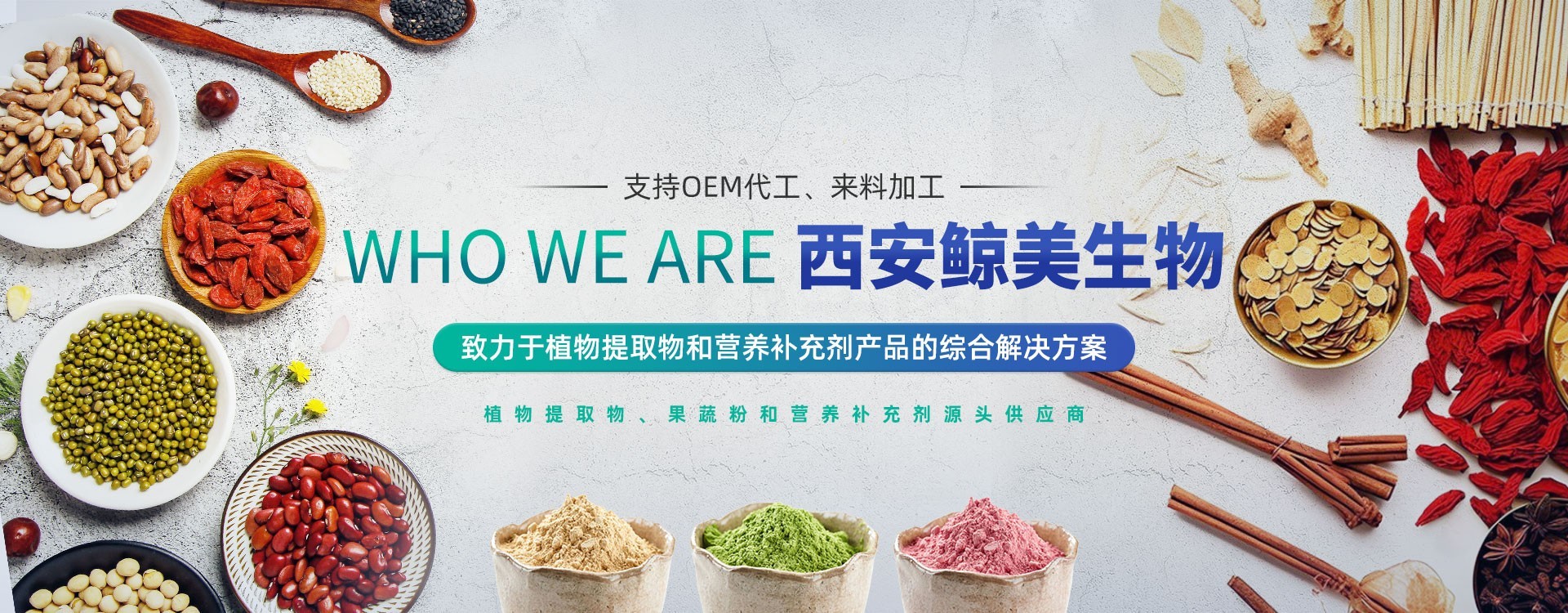 西安鯨美生物科技有限公司專注于植物提取物、營養補充劑和化妝品原料的研發,生產,銷售和產品綜合解決方案。公司專業為食品,化妝品,保健品等行業的客戶為客戶提供可靠的產品和優質的服務,持之以恒的的為客戶創造價值。 鯨美生物高度重視產品質量,技術創新和客戶滿意度提升,我們堅信這是我們成功的關鍵.公司與多家科研機構和院校建立了長期穩定的技術和業務合作關系。在陜西,云南,甘肅,四川,廣西等地建立合作式原料基地,公司采用先進的生產工藝,配備了完善的設備設施,整個生產流程從進料-加工-檢驗-出廠-售后服務等各環節都嚴格按照ISO9001質量管理體系進行。依托多年的生產和服務經驗,產品遠銷美國,加拿大,澳大利亞,歐洲...